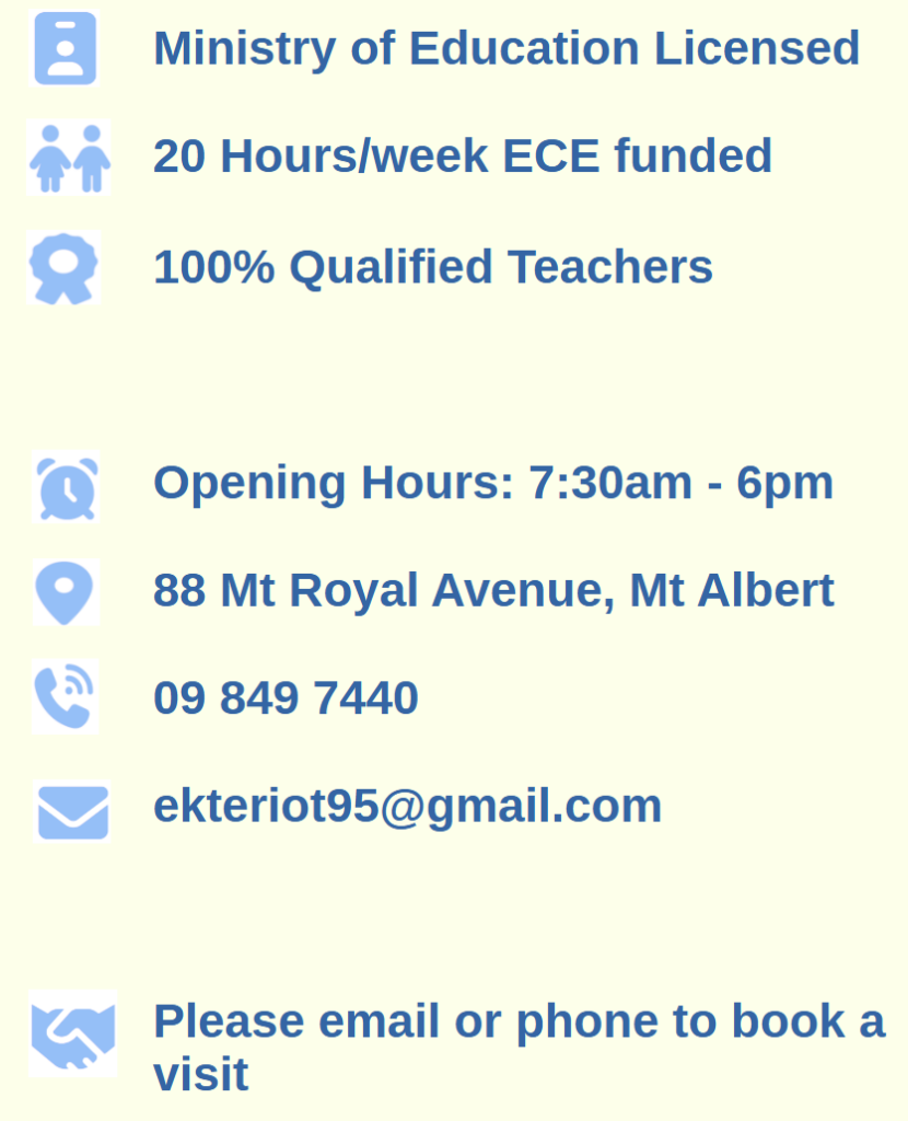 Mount Royal Early Learning Centre is a delightful childcare centre on Mount Royal Avenue in Mount Albert. With only 24 children attending each day, including four under-twos, we are very much a “home away from home.”